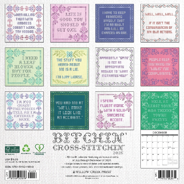 Get ready for a year of bitchin' cross-stitchin' with this 2025 wall calendar! Stay organized while adding a touch of humor to your space. Perfect for those looking to add a little quirkiness to their year. (No cross-stitch skills required!)