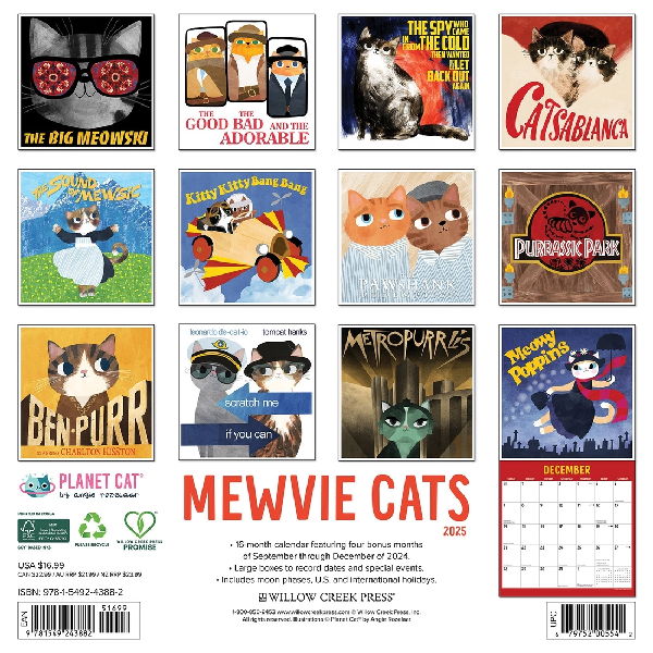 Mewvie Cats reimagines classic movie posters with a pawsome twist. From Catsablanca to The Sound of Mewsic and Kitty Kitty Bang Bang to Purrassic Park, film buffs and feline fanatics alike will love this punderfully illustrated calendar.