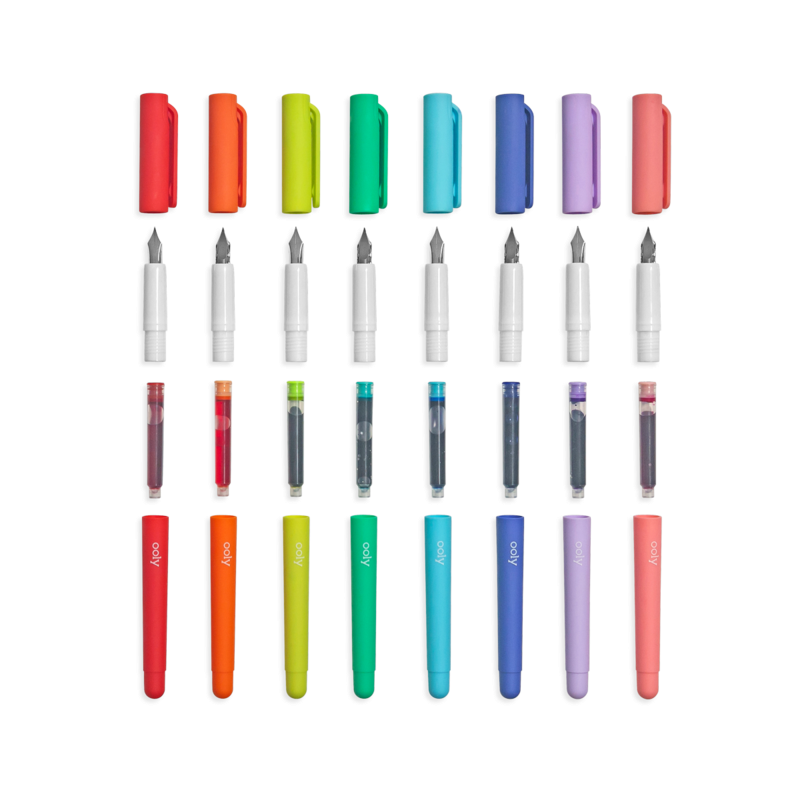 Write with a rainbow of choice using this set of eight fountain pens. The variety of colours will spark your imagination, whether you're writing a creative piece, drawing, or taking notes. The fine-tipped pens allow for slender detail, and the matte finish on the pen barrel ensures a good grip.