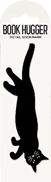Fun black metal bookmark is packaged in a clear plastic protective sleeve.