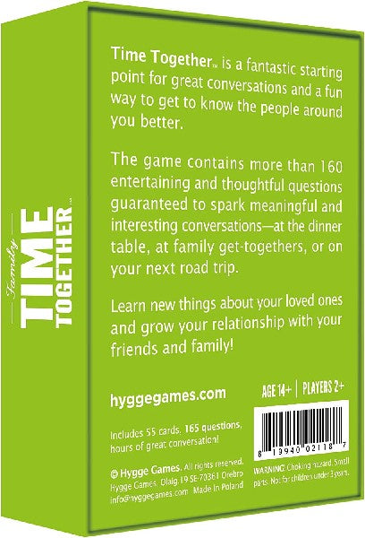 Time Together is a fantastic starting point for great conversations and a fun way to get to know the people around you better.