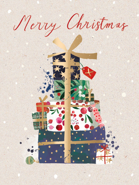 Make your holiday season merry and bright with these unique boxed Christmas cards from Ling! Each pack contains 8 greeting cards with a delightful design featuring a stack of presents - perfect for gifting to friends and family. Spread some festive cheer with these cards this holiday season!