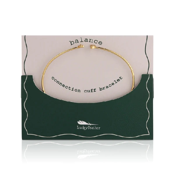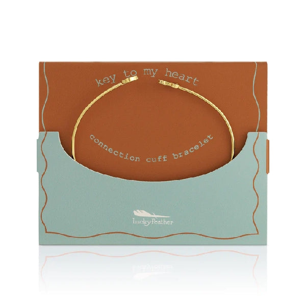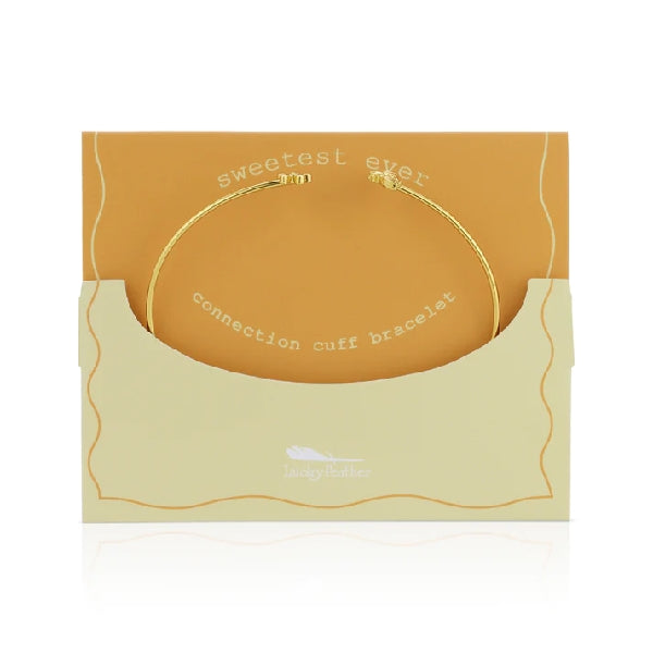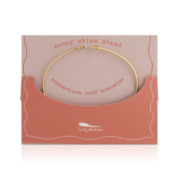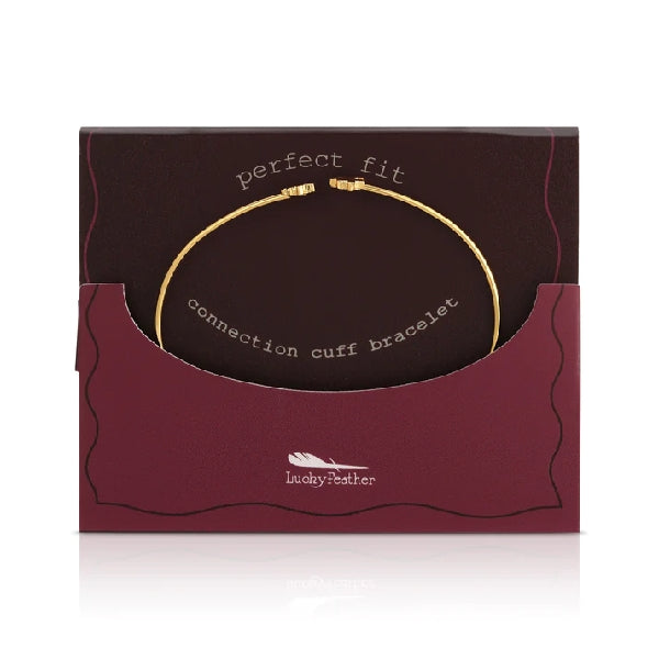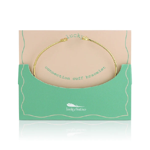 Lucky Feather's Connection Cuffs fit most wrist sizes and are meant to be stacked! Fits most wrist sizes, are suitable for sensitive skin and and are meant to be stacked! Every 14k gold dipped brass cuff features a pair of charms on either end.