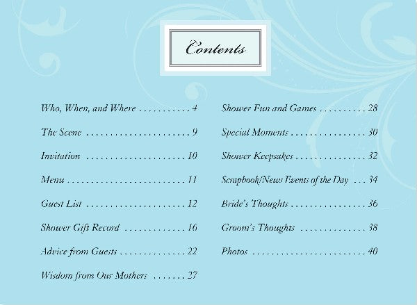 Record every happy moment of your bridal shower! This attractive record keeper includes space for photographs, your guest list, your gift record, guest predictions and advice, and more.