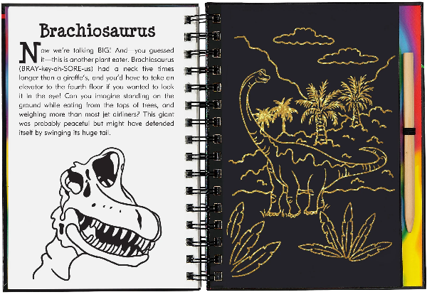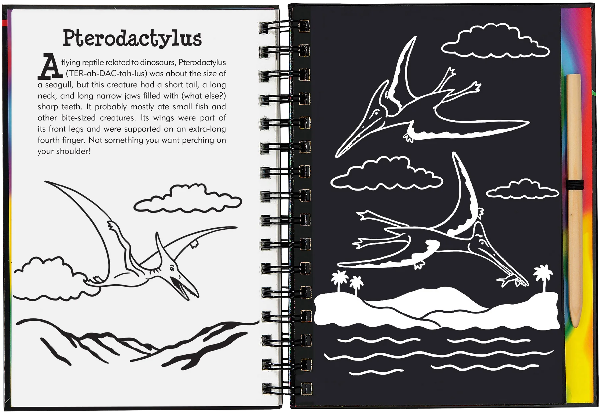 Want to learn about dinosaurs, as well as other amazing flying and swimming prehistoric creatures, as you scratch and sketch your way back in time millions of years ago? Try this trace-Along Scratch and Sketch Activity Book! White outlines on black scratch-off pages create a fun way for younger children (5 and up) to build confidence in their creativity as they reveal brilliant patterns, swirls, and colors beneath!