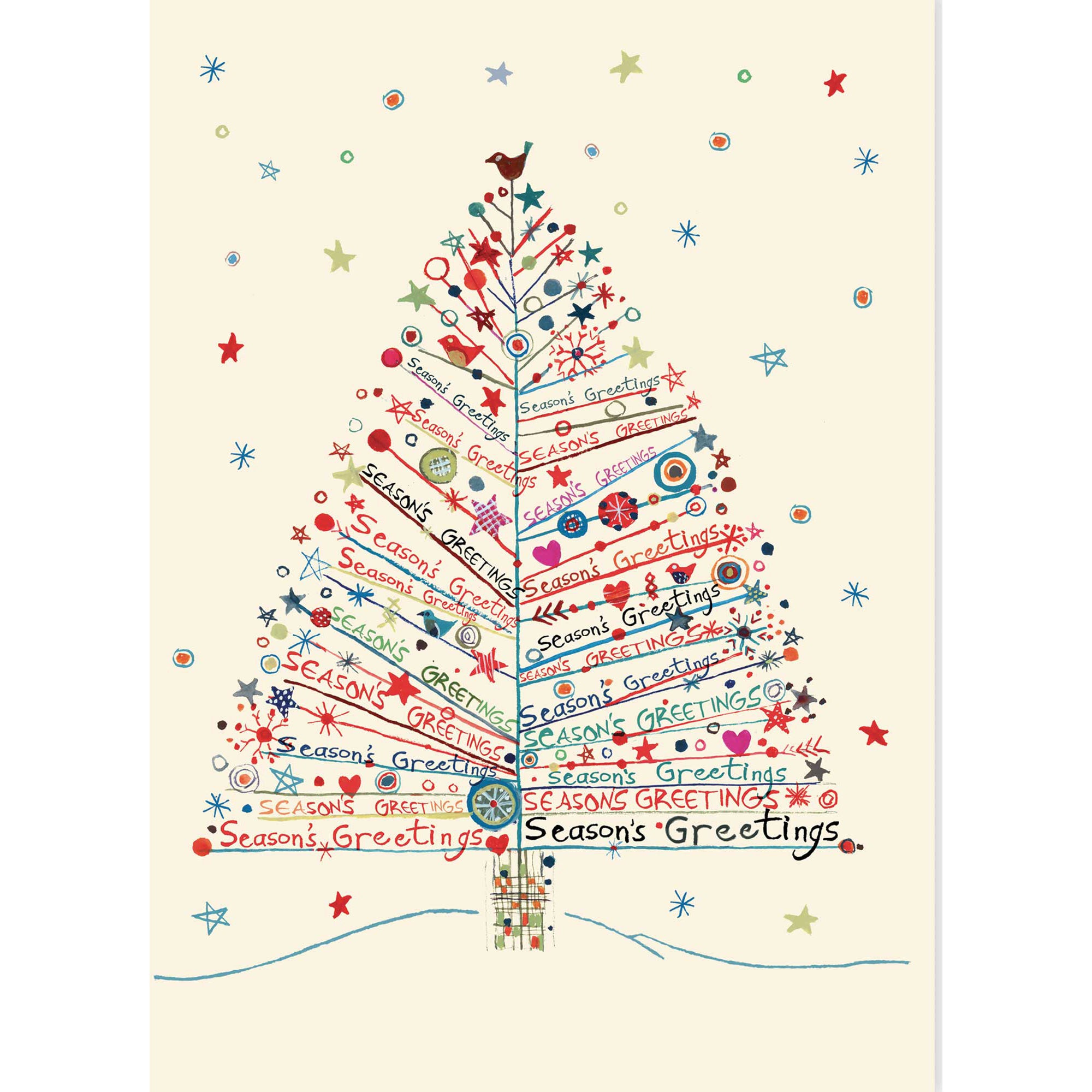 Fun folk art motifs adorn a colorful tree, which spells out ''Season's Greetings'' across every branch. Get everyone on your list into the holiday spirit with this cheerful card!