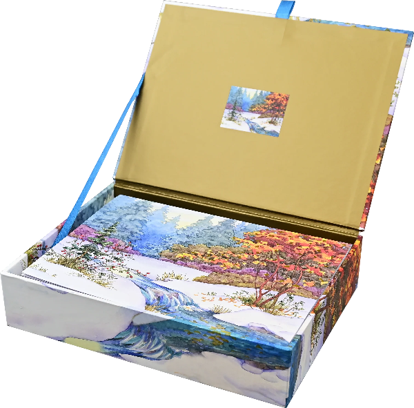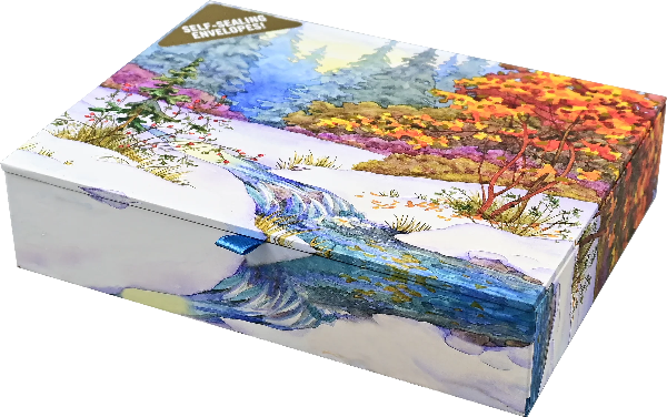 Premium card set includes 20 cards, 21 envelopes, and a matching keepsake box.