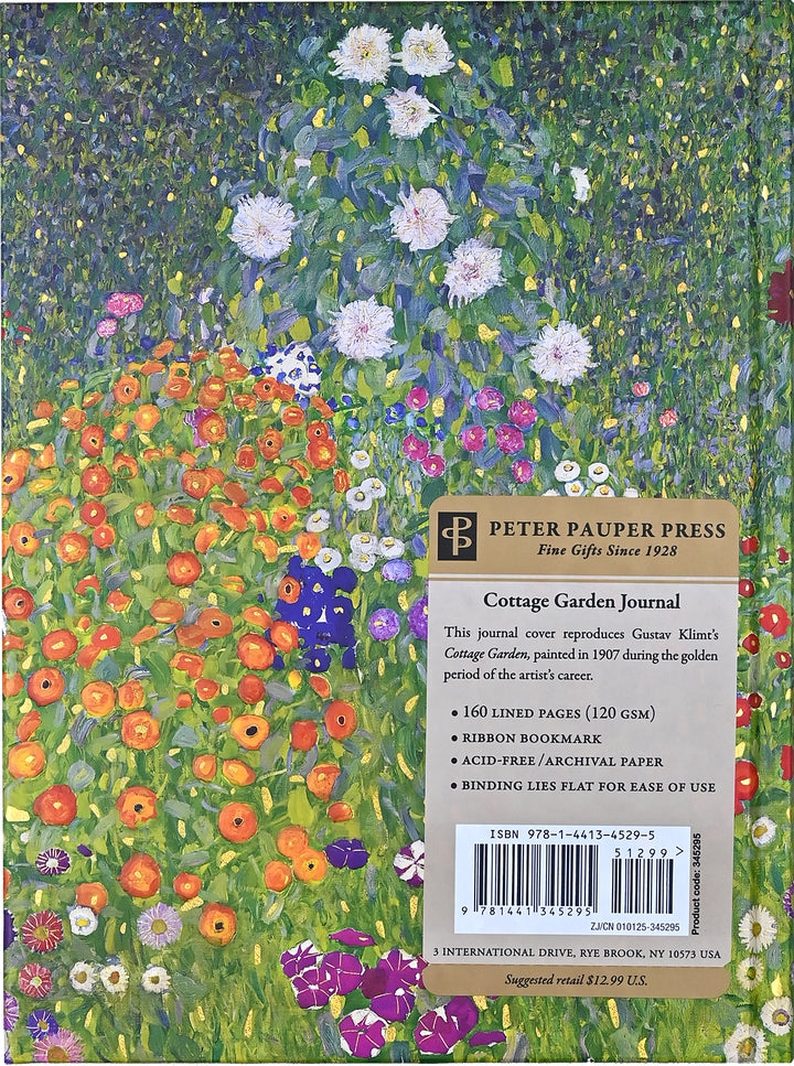 This vibrant journal reproduces Gustav Klimt's gorgeous Cottage Garden, painted in 1907, during the golden period of the artist's career. The cover design is enhanced with intricate embossing and hand-selected touches of shimmering gold foil.