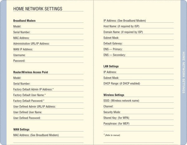 You can also record notes on home network configurations, software license numbers, etc., too, in pages in the back of the book.