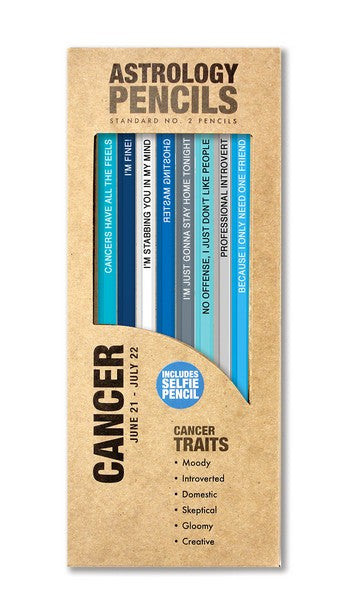 This astrology pencil set contains 8 colourful standard no.2 pencils designed to highlight each sign's best and worst traits.