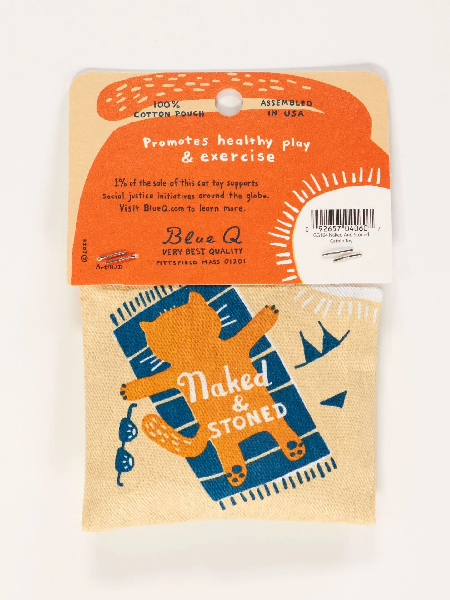 Blue Q Catnip Cat Toys are 100% cotton pouches filled with organic leaf-cut (fancy) catnip and screen printed with hilarious feline illustrations. It's a win-win gift! Humans get a kick out of the outsides. Cats get a hit of craziness from the insides.