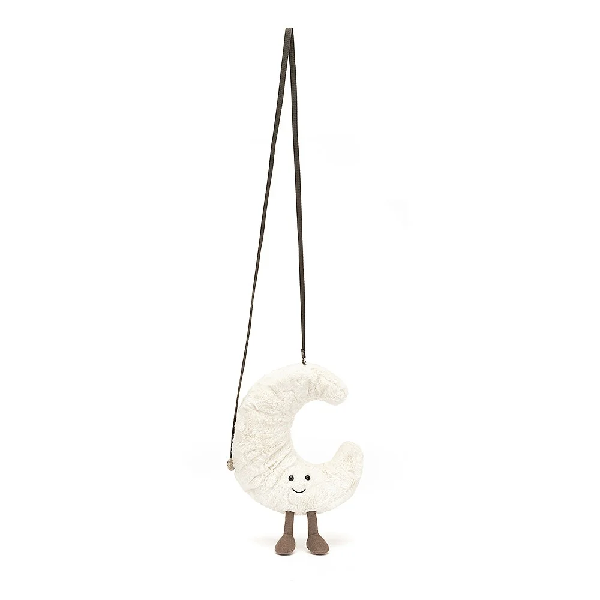 Amuseable Moon Bag is a cosmic way to carry your astro-essentials! Our lunar lovely has a crescent curve and fuzzy craters in soft meringue fur! With a cross-body strap, silvery zipper, cotton lining and mocha cord boots, this heavenly buddy is dreamy. Time and tide wait for no moon - got to dash! Strap length 120cm