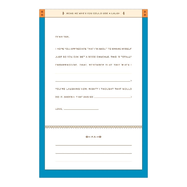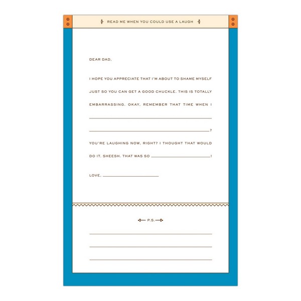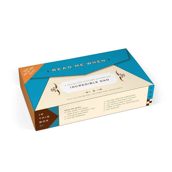 Create a treasure trove of fill-in letters for your awesome dad. Simply fill in the blanks on eight situation-specific missives, seal them in their corresponding envelopes, and present the whole package in its keepsake box. The letters can then be opened at just the right moment in the future to provide your personal thoughts and encouragement.