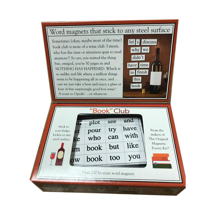 Over 200 word magnets that wish they had the time to just sit around and read.  Includes words like chapter, plot, wine, laugh and read.