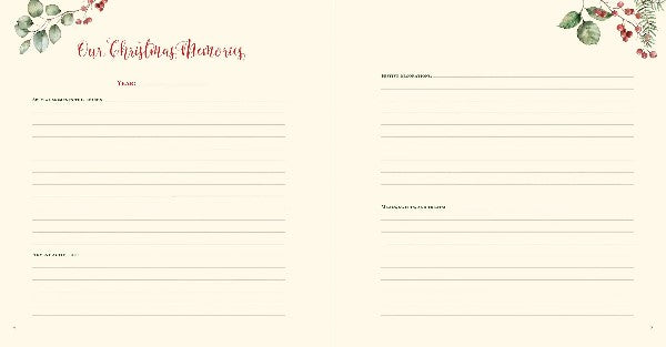 Thoughtful prompts allow you to include your family's treasured traditions, favorite celebrations, festive recipes, photos, Christmas cards, and so much more.