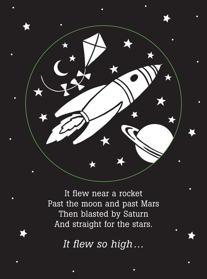 Let little ones wing their way to Slumberland with this uplifting bedtime book! Simply shine the beam of a light (not included) through the page ''windows'' to cast pictures on the wall as you read simple rhymes about a kite's journey Up, Up, and Away -- past birds, planes, clouds, and more.